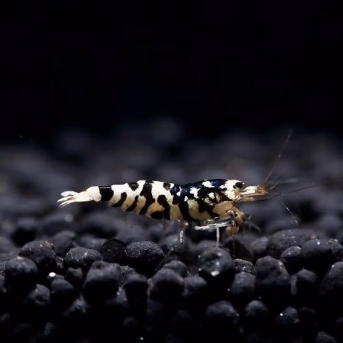 La Black Fancy Tiger Grade S-SS représente une lignée d’une rare élégance, où le noir profond et l’opacité du blanc témoignent d’un travail génétique impressionnant. Grâce à un sol technique, une alimentation contrôlée et des paramètres d’eau stables, cette crevette peut offrir une expérience d’élevage fascinante, alliant esthétique et finesse biologique.